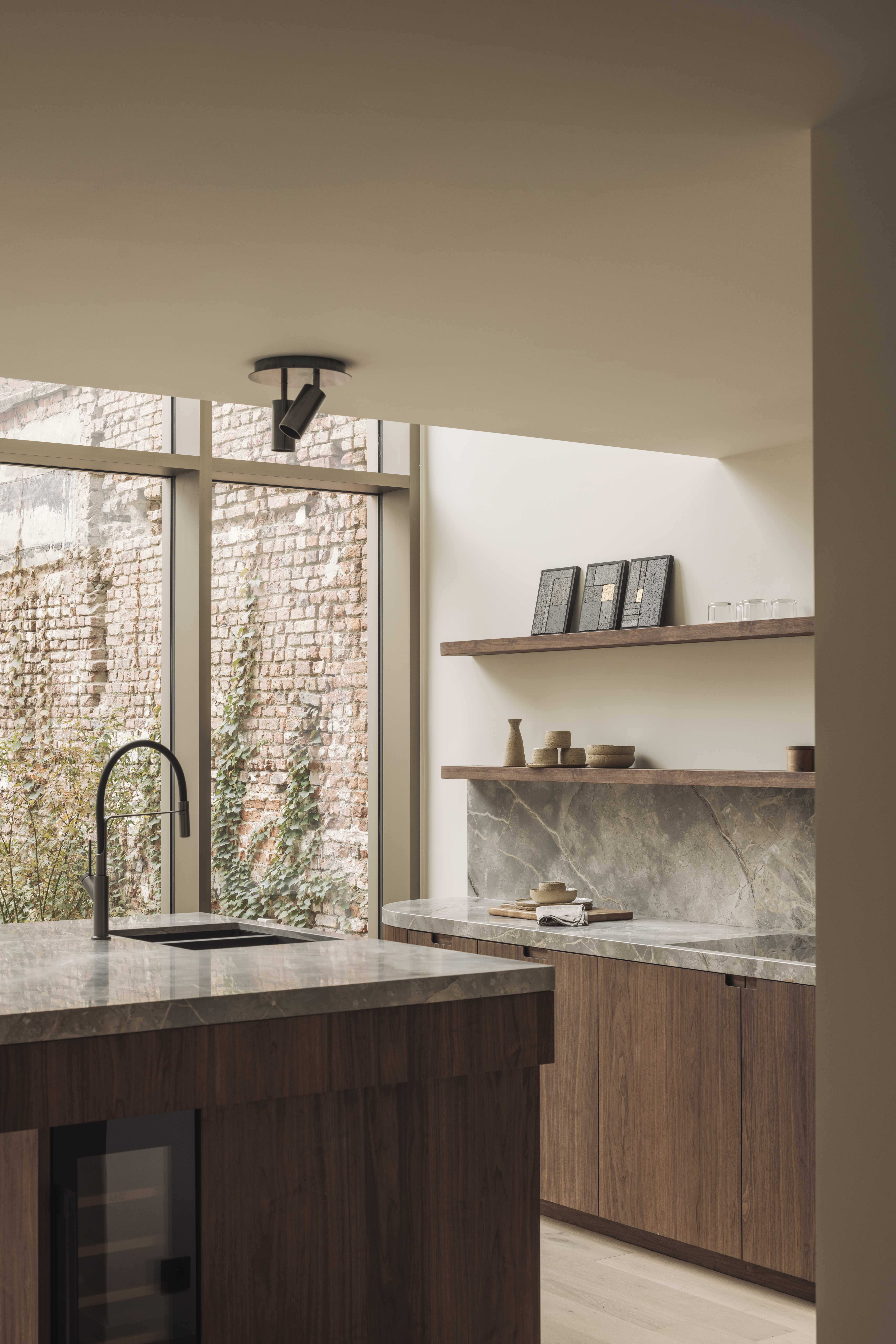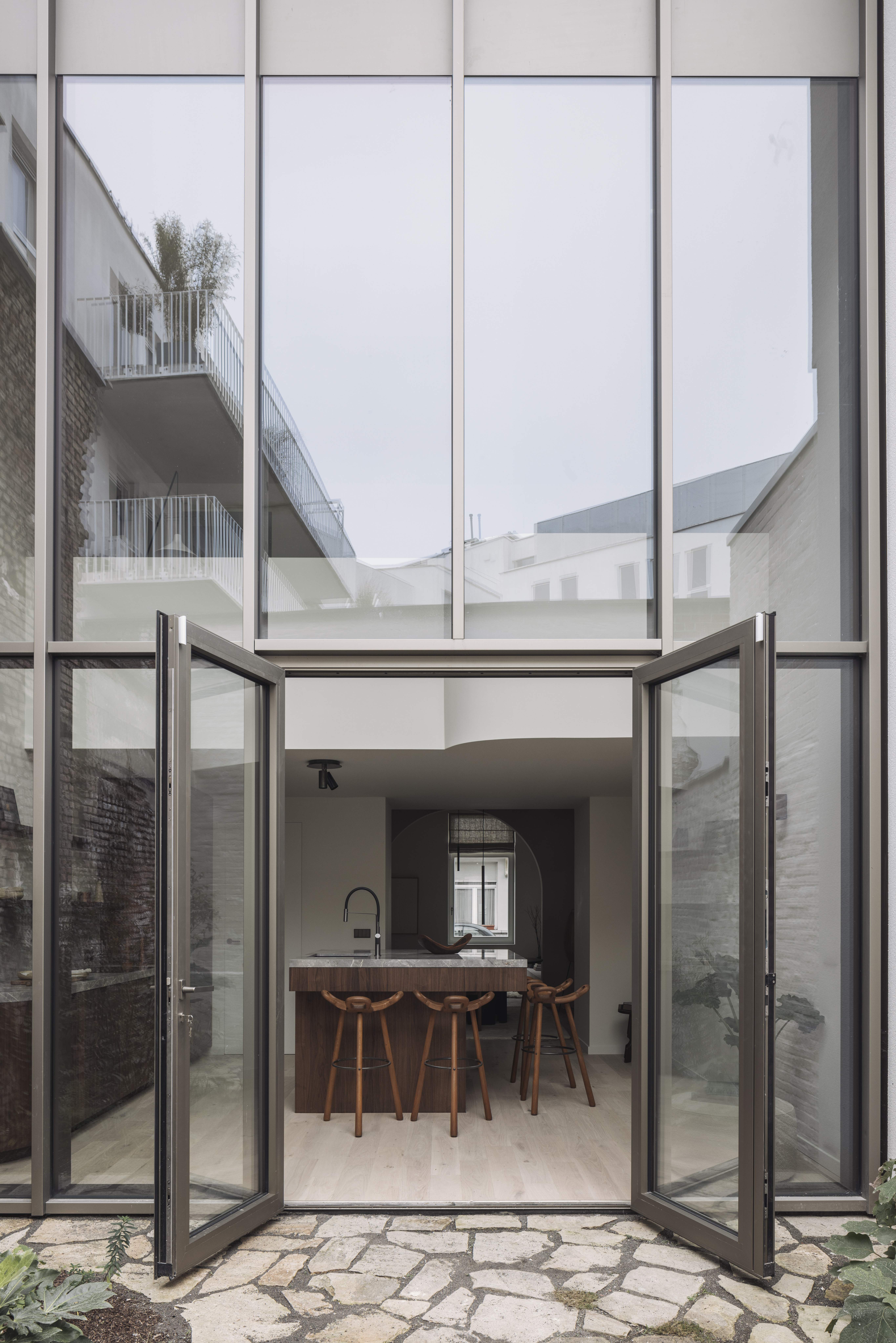 Nichée dans le quartier historique d’Anvers sud, House Sur fait figure d’hommage à la capacité de résilience et au renouveau architectural. Maison Osaïn, réputée pour ses rénovations innovantes d’anciennes propriétés, a réinventé cette résidence jadis ravagée par le feu et l’eau.
